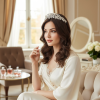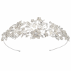 Vintage inspired headband - in a unique design embellished with simulated ivory pearls and clear crystals on a rhodium plated finish.