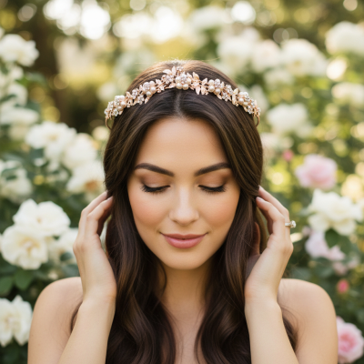 This sweet bough of enchantment will bring the perfect magic flourish to your look. A gorgeous adornment with an aura of spellbinding dewiness. Details; pearl embellished flowers. High quality crystals. High shine rose gold finish. Simulated pearls. Dimensions 18cm x 2.5cm.