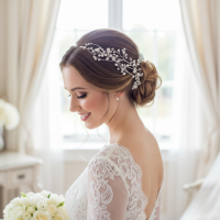 Vintage inspired headpiece - flexible and versatile can be worn as a headband or vine - embellished with high quality clear crystals on a gold vine.