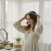 Athena collection vintage inspired hair vine - with crystal leaf embellishments and simulated ivory pearls on a silver finish. Complete with ribbon. Dimensions are approx 20cm long. Flexible style.