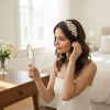 Luxurious pearl headband with freshwater pearls and high quality cz crystals on a silver plated headband.