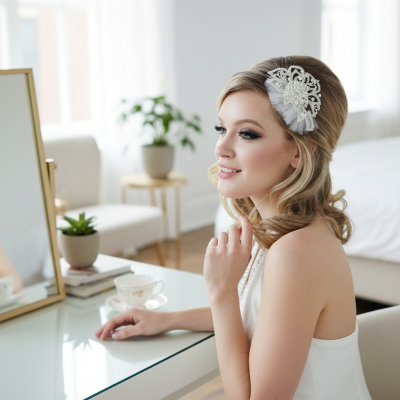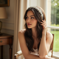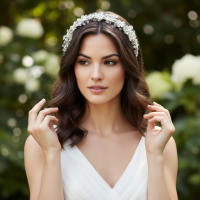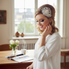 Bethany Luxe hair band in a unique eyecatching design with Clear crystals and ivory tulle on a silver plated hair band