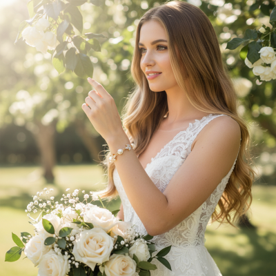 CUBIC ZIRCONIA COLECTION - SHIMMER PEARL BRACELET - BR113 ROSE GOLD