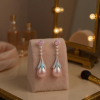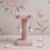 Bridgerton inspired Earrings - Harness the glamour of the gilded screen and allow yourself to be a screen goddess for the day. These breathtaking earrings exude elegance and splendour. Magnificent pink simulated ivory pearls holds court surrounded by a symphony of brilliant clear and aqua round cut crystals. Plated in 18k white gold. Dimensions: Earring size is approx 5cm long