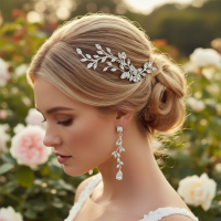 Indulge in the exquisite Vine set, a captivating ensemble that exudes elegance and allure. The centerpiece of this set is the stunning cubic zirconia rose gold headpiece, delicately crafted in a captivating vine design. Its intricate details and shimmering brilliance will make you the radiant star of any occasion. The headpiece gracefully extends to approximately 10 cm, ensuring a perfect fit and a dazzling presence. The set is further complemented by a pair of matching vine earrings, measuring 5.5 cm in length. These earrings echo the intricate beauty of the headpiece, creating a harmonious and cohesive look. Whether you're gracing a special event, attending a formal gathering, or simply seeking to elevate your everyday style, the Exquisite Vine set will captivate hearts and leave an unforgettable impression.