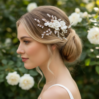 Indulge in the exquisite Vine set, a captivating ensemble that exudes elegance and allure. The centerpiece of this set is the stunning cubic zirconia silver headpiece, delicately crafted in a captivating vine design. Its intricate details and shimmering brilliance will make you the radiant star of any occasion. The headpiece gracefully extends to approximately 10 cm, ensuring a perfect fit and a dazzling presence. The set is further complemented by a pair of matching vine earrings, measuring 5.5 cm in length. These earrings echo the intricate beauty of the headpiece, creating a harmonious and cohesive look. Whether you're gracing a special event, attending a formal gathering, or simply seeking to elevate your everyday style, the Exquisite Vine set will captivate hearts and leave an unforgettable impression.