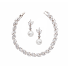 Crystal chic bracelet set - complete with matching earrings in a classic design with high quality cz crystals on a silver finish. Length of bracelet is 18cm x 0.5cm wide. Earrings are approx 2.5cm long with simulated ivory pearls.