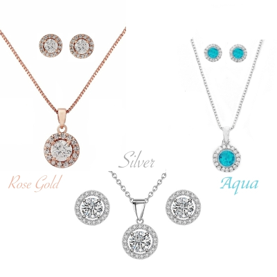 Elevate your everyday style with the captivating Classic Crystal Necklace Set Collection. • 3 necklace sets with matching earrings • Timeless design with rose gold, aqua, and clear cubic zirconia crystals • High quality silver plated finish • Adjustable 16-18cm chain • Approx 1cm x 1cm pendant and earring size This versatile set is the perfect accessory to take your look from day to night. The sparkling crystals catch the light and add a touch of elegance, while the adjustable chain ensures a comfortable and flattering fit. Whether you're dressing up for a special occasion or simply want to elevate your everyday style, this classic crystal collection is a must-have.