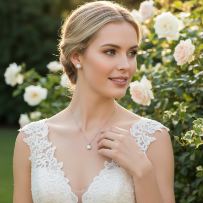 CUBIC ZIRCONIA COLLECTION - CHIC CRYSTAL NECKLACE SET - CZNK50 (ROSE GOLD)