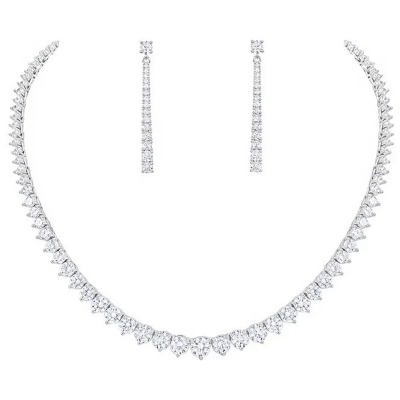 CUBIC ZIRCONIA COLLECTION - CHIC ELEGANCE NECKLACE SET - CZNK235 SILVER