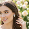 Bring enchantment to your day with this alluring flourish of glorious marquise and pear cut crystals, brings flashes of fire and radiance, catching and refracting light and perfectly balancing elegance with glamour. Plated in 18k white gold with simulated ivory pearls. Dimensions are approx 2cm x 1.6cm