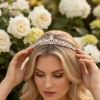 Measuring approximately 15 cm in length and 2.6 cm at its highest point, the tiara offers a graceful yet striking silhouette that complements bridal and formal hairstyles alike. Perfect for brides, bridesmaids, or special occasions, this exquisite piece adds a touch of timeless elegance and sparkling glamour.