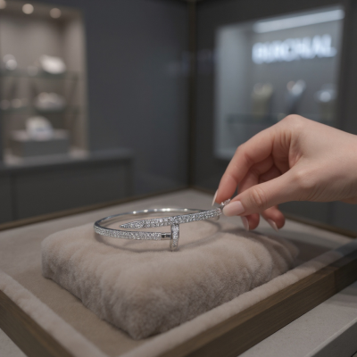 Indulge in the captivating allure of this exquisite bracelet, a timeless masterpiece that will elevate your style to new heights. Its delicate silhouette is adorned with a symphony of shimmering clear crystals, each meticulously set on a lustrous silver finish. Crafted in a mesmerizing design, this bracelet exudes an air of exclusivity and elegance. Size is 6.1cm.