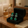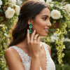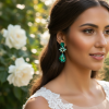 Add a touch of glamour - These earrings are the perfect accessory for any glamorous occasion. The Emerald tones add a glamorous and feminine touch, making these earrings a must-have for any vintage-inspired look. With their intricate design and sparkling rhinestone crystals, these earrings exude elegance and splendor. Dimensions: 4.2cm x 1.7cm on an antique gold finish.