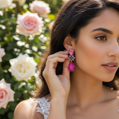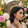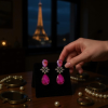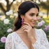 Add a touch of glamour - These earrings are the perfect accessory for any glamorous occasion. The hot pink tones add a glamorous and feminine touch, making these earrings a must-have for any vintage-inspired look. With their intricate design and sparkling rhinestone crystals, these earrings exude elegance and splendor. Dimensions: 4.2cm x 1.7cm on an antique gold finish.