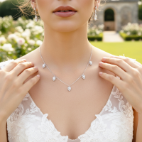CUBIC ZIRCONIA COLLECTION - CRYSTAL DROP NECKLACE - CZNK116 - SILVER