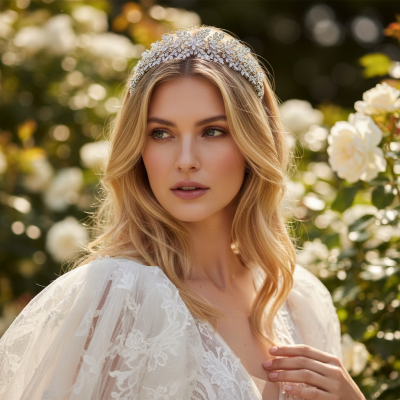 Let this crystal symphony serenade you on your special day. Ignite your look with this sumptuous trail of lavish crystal work. Masses of Marquise cut crystal flowers spring forth from a bed of pear cut and Marquise cut crystal leaves. The intense fire and radiance of the flawless crystals will ensure that you catch the light at all angles. Allow this breathtaking masterpiece to help you conquer all with beauty and flare. Details; High quality cubic zirconia crystals. High shine silver finish. Dimensions 23cm x 7cm at widest point.