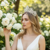 Regal radiance awaits with the Elegance Tiara. Sparkling rhinestone crystals on a lustrous silver finish Delicate yet durable design, measuring 8cm high x 15cm wide The perfect accessory for brides, bridesmaids, and any special occasion Elevate your look with the Elegance Tiara. This exquisite headpiece exudes timeless sophistication, making you feel like royalty on your wedding day or any formal event. The combination of shimmering rhinestones and clear beads creates a mesmerising, eye-catching effect that will have all eyes on you. With its sturdy yet lightweight construction, you can wear this tiara with confidence, knowing it will stay securely in place throughout the day or night.