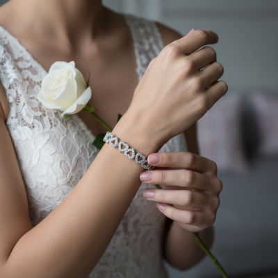 CUBIC ZIRCONIA COLLECTION - CRYSTAL HEARTS BRACELET - BR132 SILVER