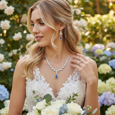 CUBIC ZIRCONIA COLLECTION - CRYSTAL SHIMMER NECKLACE - CZNK222 BLUE