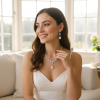Add a touch of elegance and glamour to your outfit with our stunning crystal shimmer necklace set. This set comes complete with matching earrings, making it the perfect accessory for any occasion. The design of this set is both chic and stylish, with high quality pear drop cubic zirconia crystals that sparkle on a silver finish. The pendant is 1.5cm long, adding just the right amount of sparkle to your neckline. The necklace itself is 41cm in length, making it the perfect length to complement any neckline. The earrings are 4.7cm long, adding a delicate and feminine touch to your overall look. The combination of the shimmering crystals and the silver finish creates a timeless and sophisticated look