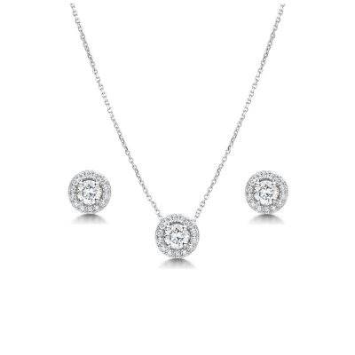 Simulated diamond necklace set - complete with matching earrings - embellished with high quality cubic zirconia crystals on a round embellished crystal design size is 6mm with an adjustable chain. Earring size is also 6mm. Truly Stunning!