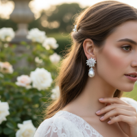 Add timeless elegance to your special day with these stunning crystal drop earrings, designed to catch the light and complement any bridal look. Featuring brilliant-cut cubic zirconia crystals, these earrings offer a classic and refined silhouette with a touch of sparkle.