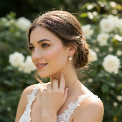 CUBIC ZIRCONIA COLLECTION - DAINTY PEARL DROP EARRINGS - CZER780 GOLD