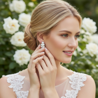 Dainty crystal drop earrings - embellished with brilliant clear round rainbow aurora style cubic zirconia crystals on a sparkly silver finish. Size is 2.5cm x 1cm wide.