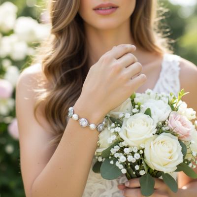 Dainty starlet bracelet - unique stylish bracelet embellished with ivory pearls and cubic zirconia crystals on a platinum plated finish. Size is adjustable. Matching earrings and necklace is available.