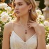 CUBIC ZIRCONIA COLLECTION - DAINTY STARLET GEM NECKLACE SET - CZNK244 RED