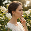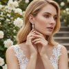 Create authentic red carpet drama on your special day with the exquisite aesthetic of these show-stopping earrings. Flawless pear and marquise cut crystals radiate astral fire and brilliance at every angle complete with simulated ivory pearls. Details; High quality cubic zirconia crystals. Plated in 18k white gold. Dimensions are 4.8cm x 1.3cm wide