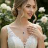 CUBIC ZIRCONIA COLLECTION - DAZZLING CRYSTAL DROP NECKLACE SET - (CZNK55) SAPPHIRE