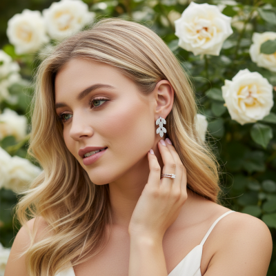 CUBIC ZIRCONIA COLLECTION - DECO DIVINE EARRINGS- CZER599 SILVER