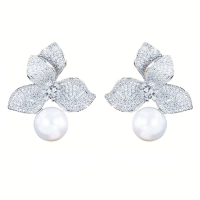 CUBIC ZIRCONIA COLLECTION - EXQUISITE BAROQUE PEARL EARRINGS - CZER917 GOLD