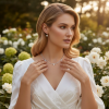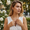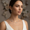 The necklace measures 42 cm in length and includes a 5 cm extension chain, allowing for a comfortable and adjustable fit. Completing the set are perfectly coordinated matching earrings, measuring 1 × 2 cm, designed to complement the necklace with refined sparkle and graceful detail.