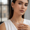 This exquisite and stylish crystal butterfly necklace set is a beautiful symbol of elegance and charm. Featuring a delicately crafted butterfly design, the set is embellished with sparkling clear cubic zirconia crystals that add radiant brilliance against a polished silver finish. The necklace measures 42 cm in length and includes a 5 cm extension chain, allowing for a comfortable and adjustable fit. Completing the set are perfectly coordinated matching earrings, measuring 1 × 2 cm, designed to complement the necklace with refined sparkle and graceful detail. Perfect for special occasions, evening wear, or elegant gifting, this crystal butterfly necklace and earring set adds a touch of sophistication and whimsical beauty to any jewelry collection.