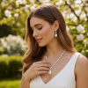 Step into the spotlight and embrace the diva within with our exquisite necklace that radiates elegance and splendour. This stunning piece showcases the captivating allure of magnificent pear cut crystals, gracefully nestled as the focal point. Surrounding these remarkable gems is a symphony of brilliant round cut crystals, elegantly arranged in a drop formation.