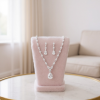 Step into the spotlight and embrace the diva within with our exquisite necklace that radiates elegance and splendour. This stunning piece showcases the captivating allure of magnificent pear cut crystals, gracefully nestled as the focal point. Surrounding these remarkable gems is a symphony of brilliant round cut crystals, elegantly arranged in a drop formation. Crafted with the utmost precision and attention to detail, this necklace is plated in 18k white gold, adding a touch of luxury and sophistication to your ensemble. Captivate the room with the dazzling glamour of this necklace, perfect for making a statement at special events or adding a touch of sparkle to your everyday attire. Its dimensions are exquisitely designed to accentuate the neckline and enhance your natural radiance. Dimensions: Necklace 44cm long, earrings 3.5 x 0.8cm wide.