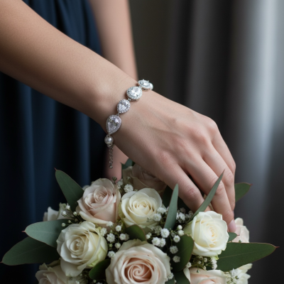 CUBIC ZIRCONIA COLLECTION - EXQUISITE PEARL BRACELET - SILVER -BR121