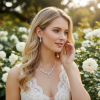 Cubic Zirconia collection exquisite wedding necklace set. Embellished with clear cubic zirconia crystals on a gold plated finish. Earring size is 3cm long