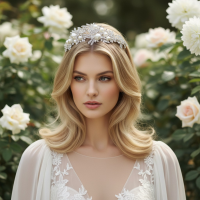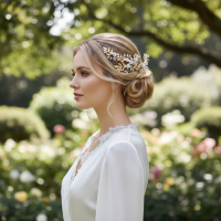 Allow yourself to be crowned by the regal fire and beauty of this exquisite pièce de résistence. An utterly magical work of intense crystal craftsmanship, catch the light and radiate like the goddess you are with a multitude of Marquise and pear cut crystals emulating bejewelled flowers. Kissed with an apex of stunning pear cut crystals , the exquisite symmetry of this piece will help you to glow and shine like a star on your day of enchantment. Details; High quality cubic zirconia crystals. High shine gold finish. Dimensions 14cm x 4cm high.