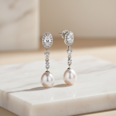 Expertly crafted for lasting brilliance, these exquisite earrings are the perfect choice for brides, bridesmaids, and special occasions, adding a touch of effortless glamour and refined beauty.