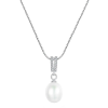 CUBIC ZIRCONIA COLLECTION - FRESHWATER PEARL NECKLACE - CZNK195 SILVER