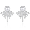 Create authentic red carpet drama on your special day with the exquisite aesthetic of these show-stopping gatsby style earrings. Flawless simulated pearls and round cut crystals radiate astral fire and brilliance at every angle. Adorn yourself with the sumptuous luxury of these sublime earrings and allow the spellbinding aura of the silver screen to permeate the magic of your day. Details; High quality cubic zirconia crystals. Plated in 18k white gold.