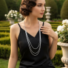 Oozing sheer glamour, this multi-layered crystal drop necklace is a breathtaking statement piece inspired by iconic 1920s Gatsby style. Designed to transform any outfit, it features cascading crystal drops that create movement, sparkle, and undeniable drama with every step. Measuring 82 cm in length, this long, layered design drapes elegantly for a striking, fashion-forward silhouette. Perfect for adding instant glam to eveningwear, party looks, or special occasions, this necklace delivers bold vintage elegance with a modern edge—an eye-catching accessory for those who love to make a statement.
