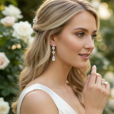 CUBIC ZIRCONIA COLLECTION - GLAM STARLET EARRINGS - CZER564 SILVER