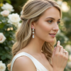 Chic and stylish earrings in a unique design - embellished with high quality cubic zirconia crystals on a silver finish. Earring size is 4cm long x 1cm wide