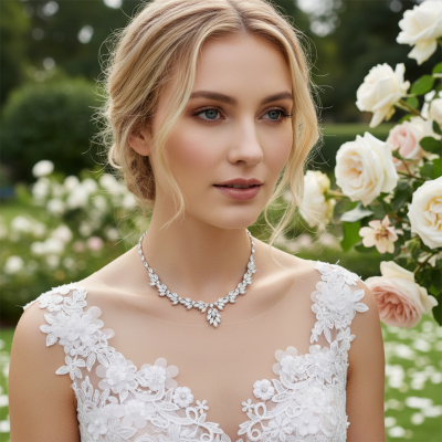 CUBIC ZIRCONIA COLLECTION - GLITZY STARLET NECKLACE SET - CZNK154