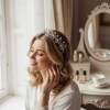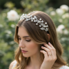 - CUBIC ZIRCONIA COLLECTION - GRACELFUL PEARL HEADBAND - AHB128 SILVER